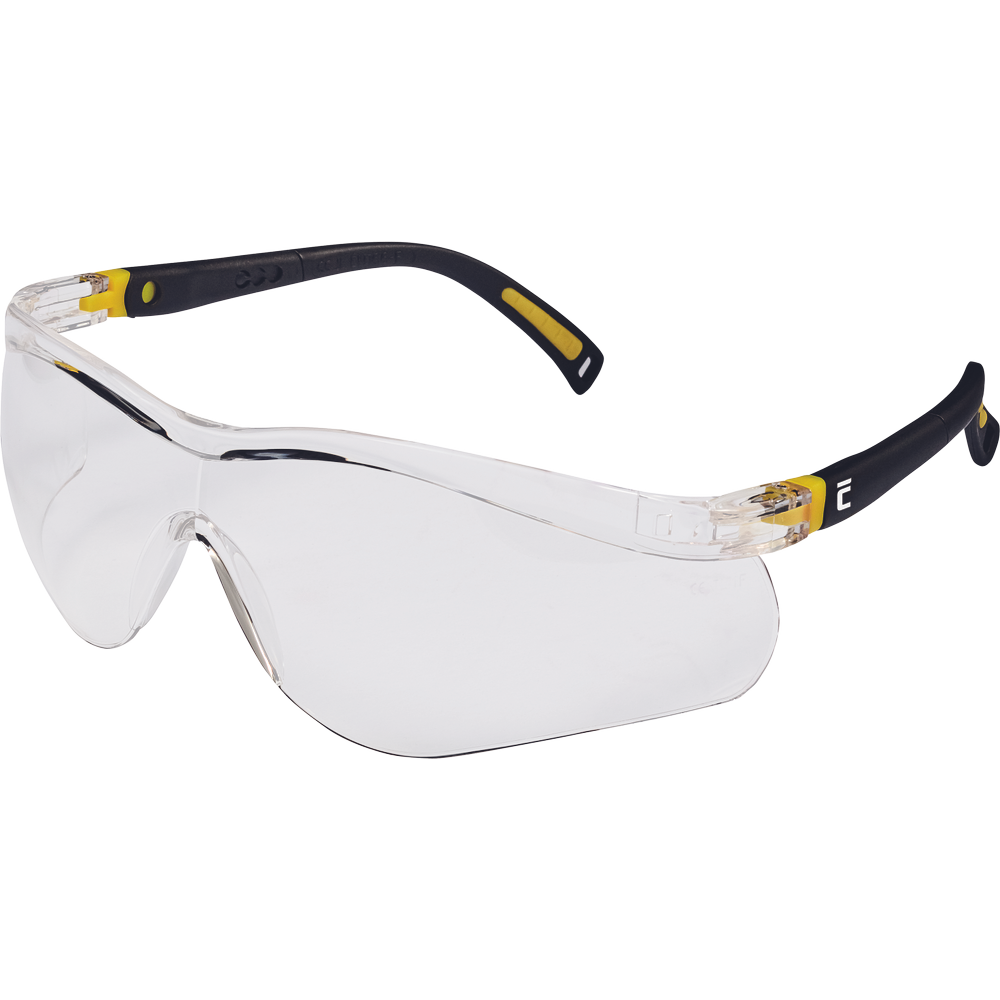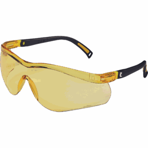 Športna očala optičnega razreda 1 z rumenimi polikarbonatnimi lečami z UV-filtrom (v skladu s standardom EN 170), prevleko proti praskam in megli (razred F v skladu s standardom EN 166), zaščito pred nizkoenergijskimi udarci ter nastavljivim kotom in dolžino temena.