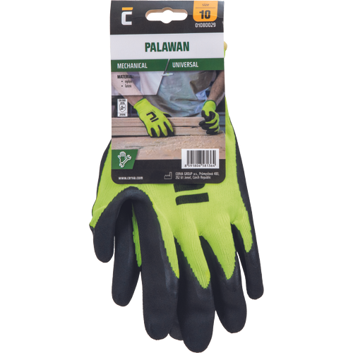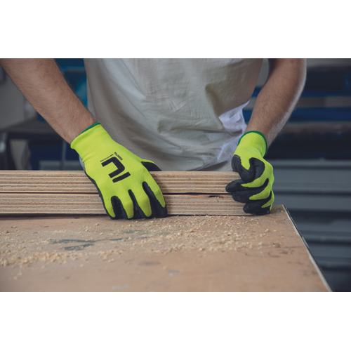 – brezšivne zaščitne rokavice, pletene iz sintetične preje s prevleko iz lateksa na dlaneh in prstih.
