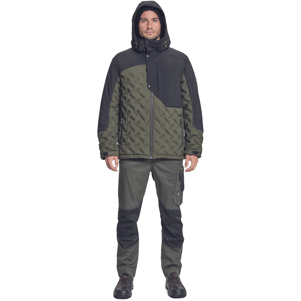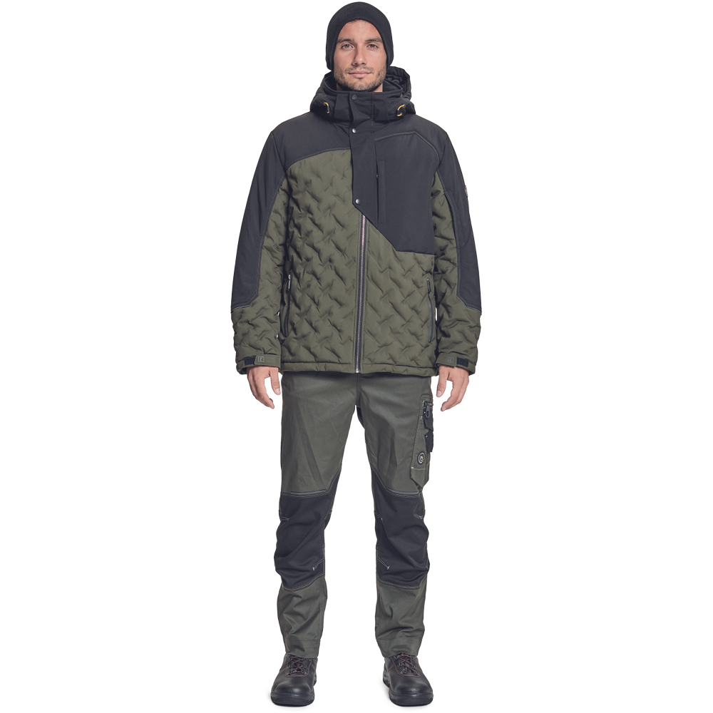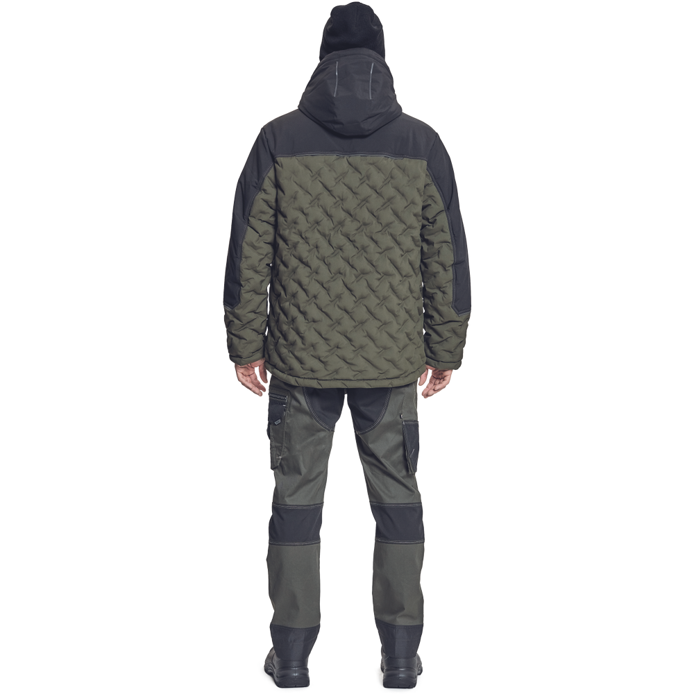 – moška zimska parka s snemljivo oblazinjeno kapuco in podaljšanim hrbtnim delom – odporna na veter in vodo, prezračevanje v pazduhi – 2 stranska žepa z zadrgo, 1 prsni žep z zadrgo, 1 rokavni žep z zadrgo, 2 notranja žepa z zadrgo in 2 večnamenska žepa – vrvica za povlečenje v spodnjem delu in kapuci – nastavljiv rob rokavov z velcro
