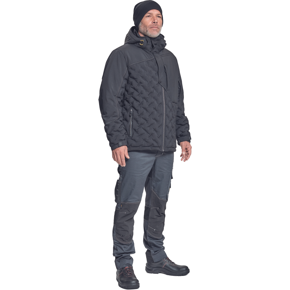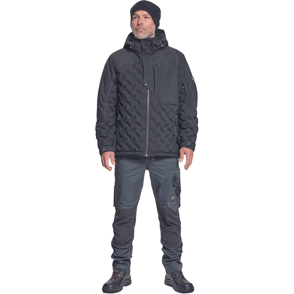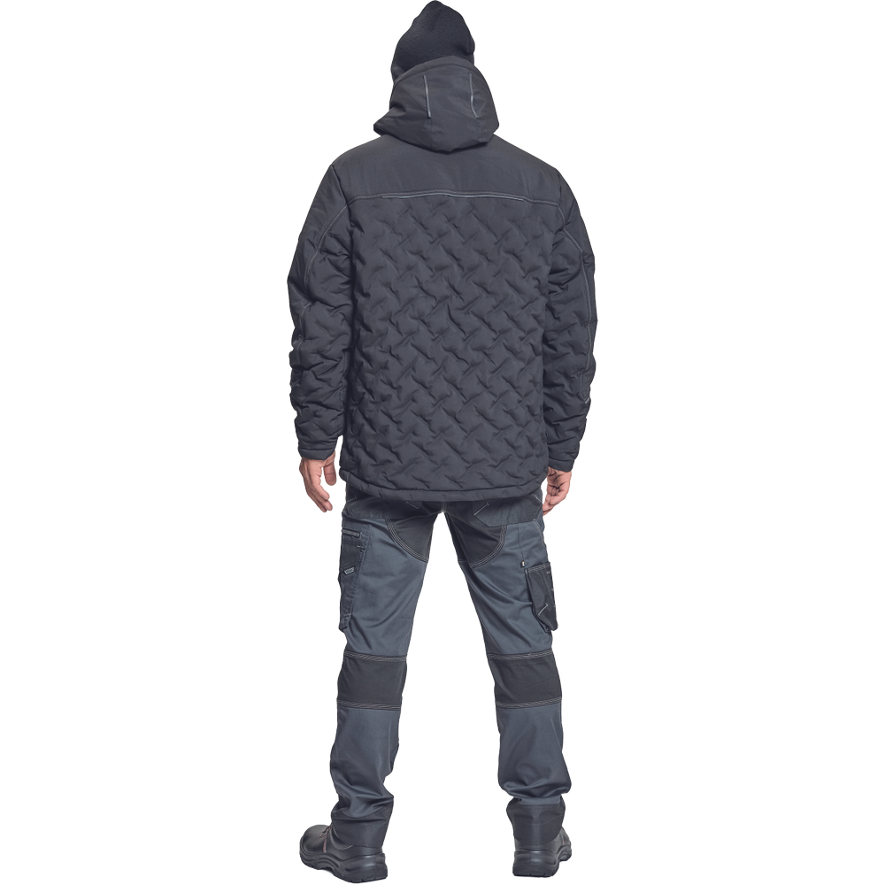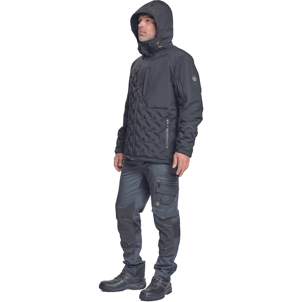 – moška zimska parka s snemljivo oblazinjeno kapuco in podaljšanim hrbtnim delom – odporna na veter in vodo, prezračevanje v pazduhi – 2 stranska žepa z zadrgo, 1 prsni žep z zadrgo, 1 rokavni žep z zadrgo, 2 notranja žepa z zadrgo in 2 večnamenska žepa – vrvica za povlečenje v spodnjem delu in kapuci – nastavljiv rob rokavov z velcro