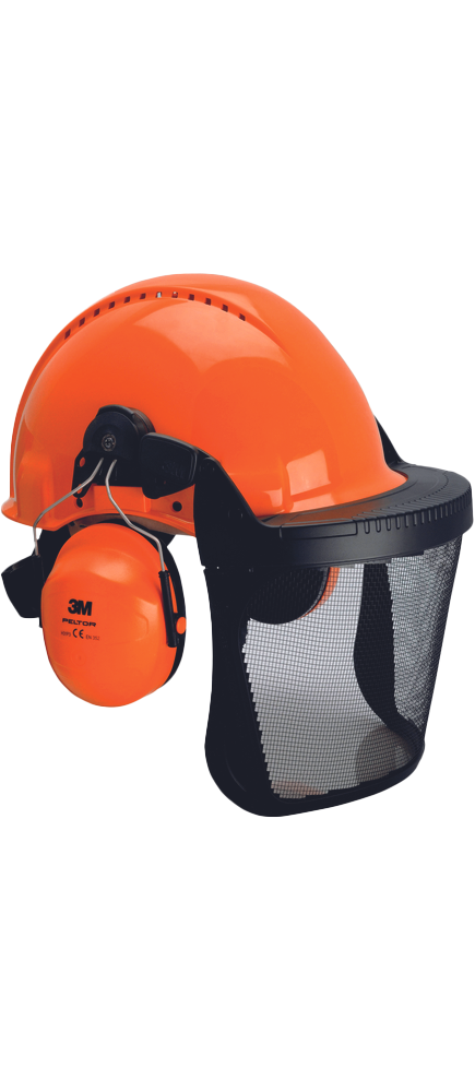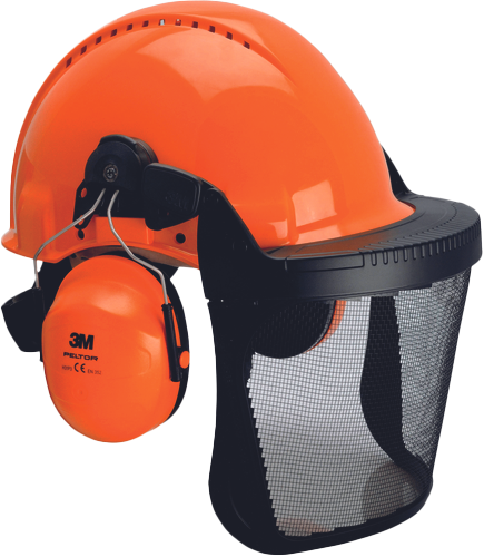 – Gozdarski komplet, sestavljen iz trdega klobuka, ščitnikov za ušesa in ščitnika za obraz