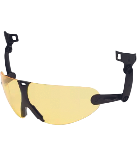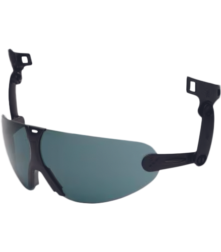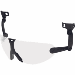 Vgrajena očala v varnostno čelado V9 zagotavljajo zaščito pred delci in UV-žarki ter prozorno lečo s površino, odporno na praske in meglo, ki pomaga zmanjšati fizične poškodbe in zameglitev. Zlahka jih prilagodite in pritrdite na varnostno čelado 3M™, zlahka se premikajo med lupino čelade in naglavnim trakom
