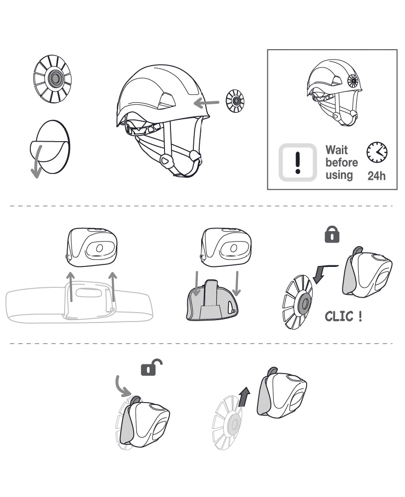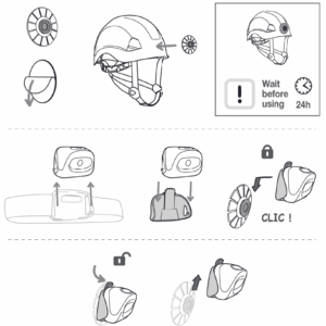 Petzl E93001 KIT ADAPT je adapter, ki uporabniku omogoča uporabo čelne svetilke na čeladi brez naglavnega traku, hkrati pa ohranja možnost nagibanja telesa čelne svetilke.