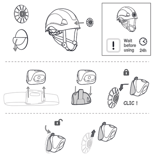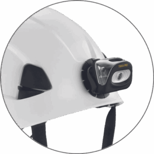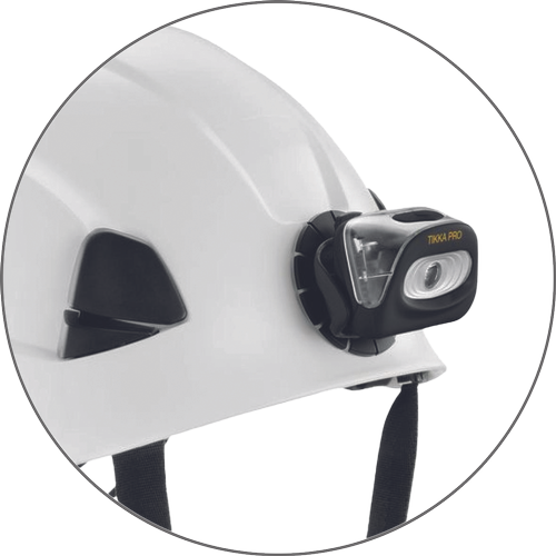 Petzl E93001 KIT ADAPT is an adapter that allows the user to use the headlamp on a helmet without a headband, while retaining the ability to tilt the headlamp body
