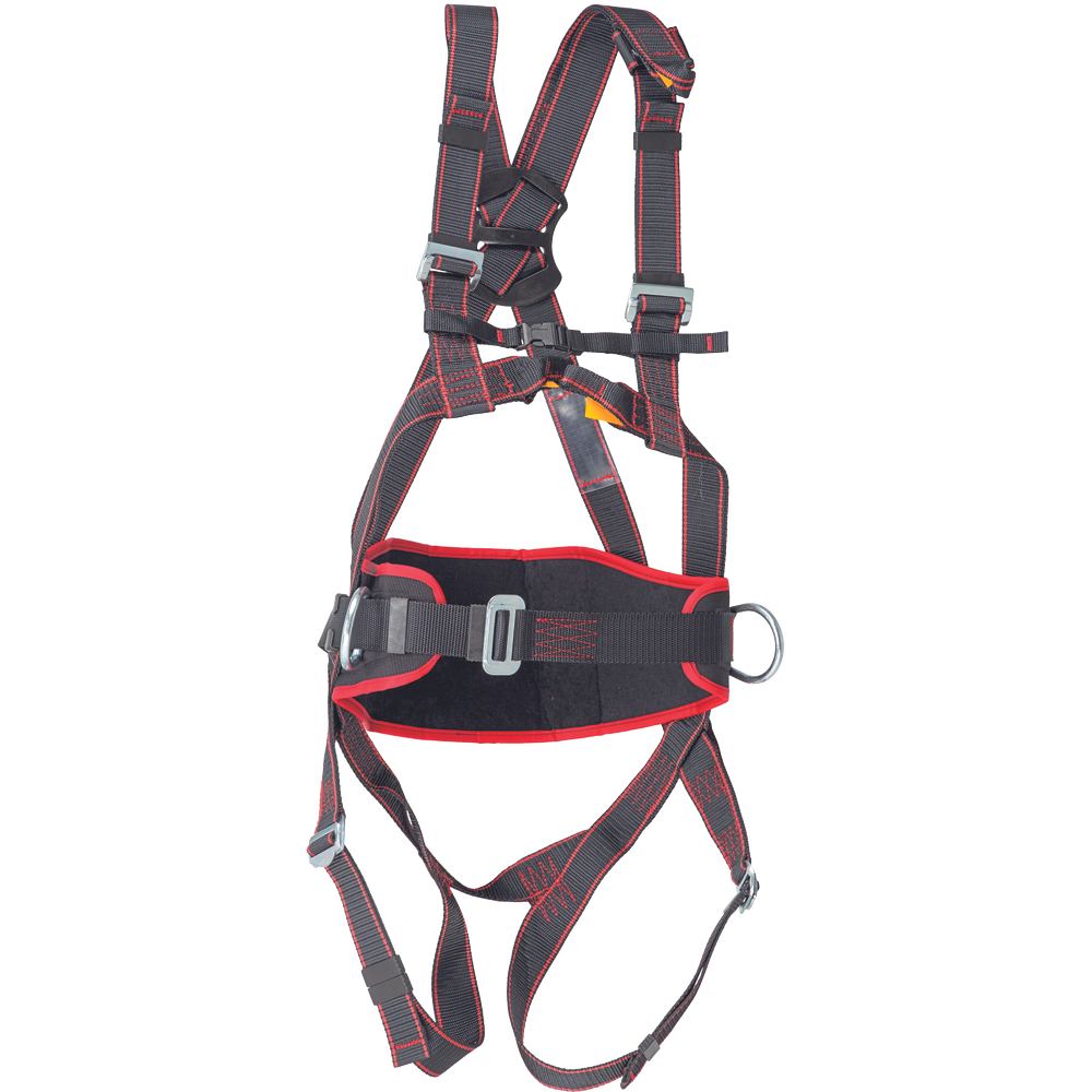 Varnostni pas LX2 XXL z zadnjimi in sprednjimi pritrdilnimi točkami, pozicijski pas z stranskimi obroči, nastavljivi ramenski in stegenski pasovi, podaljšano spletno vrvico do zadnje pritrdilne točke EN 361, EN 358