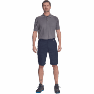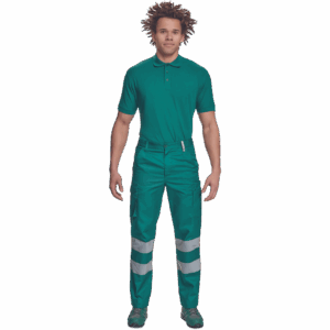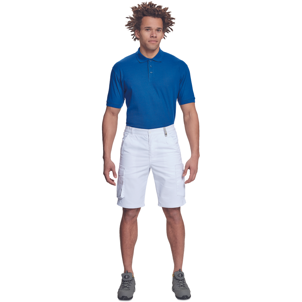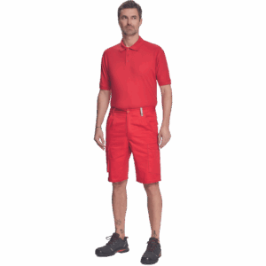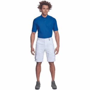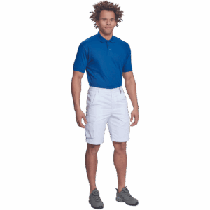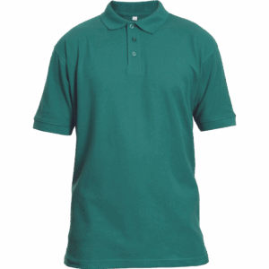 moška majica s kratkimi rokavi; zapenjanje na 3 gumbe; ploski pleteni ovratnik in robovi rokavov.