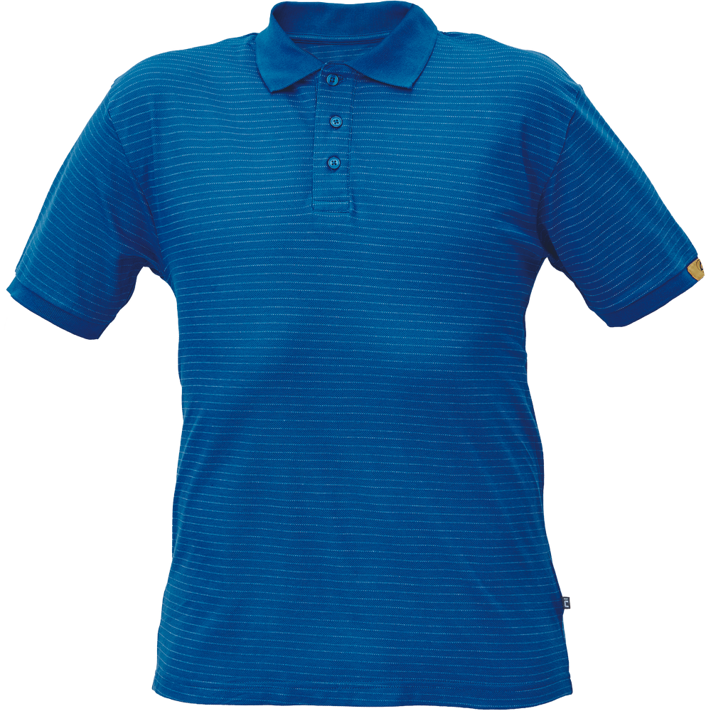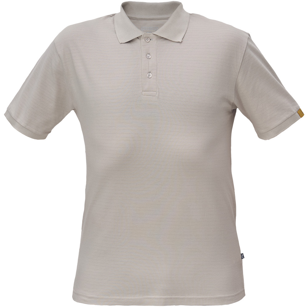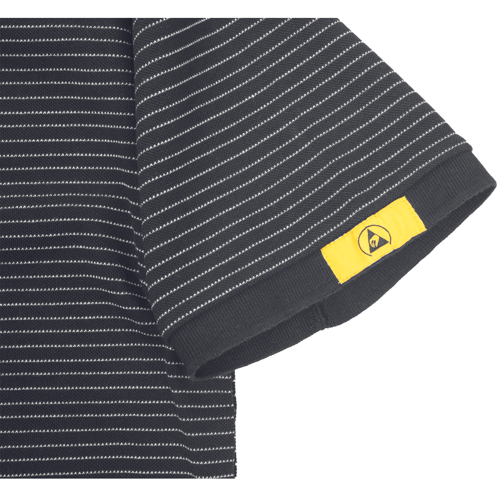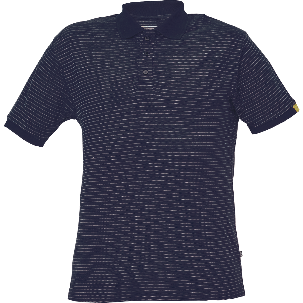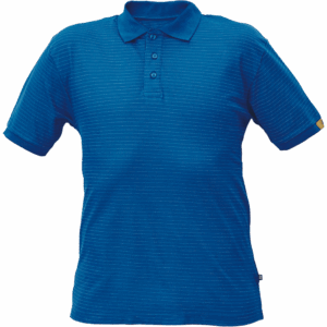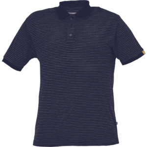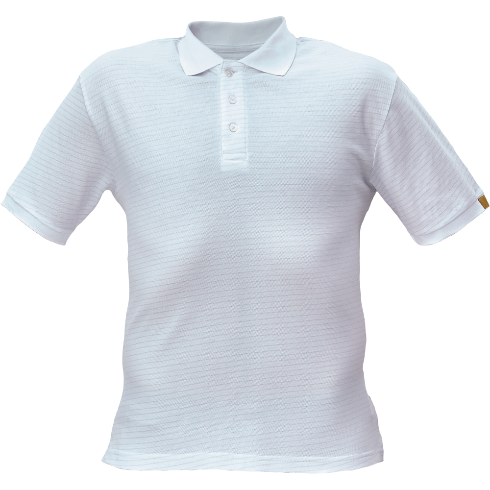 Polo majica ESD s kratkimi rokavi iz bombažnega pika z antistatičnimi vlakni; zagotavlja zaščito elektronskih naprav pred elektrostatičnimi učinki; univerzalni kroj.
