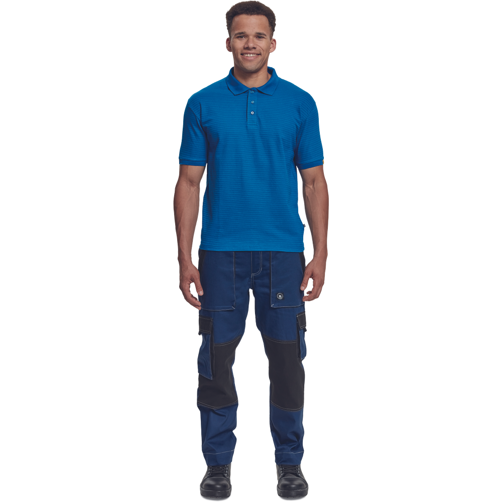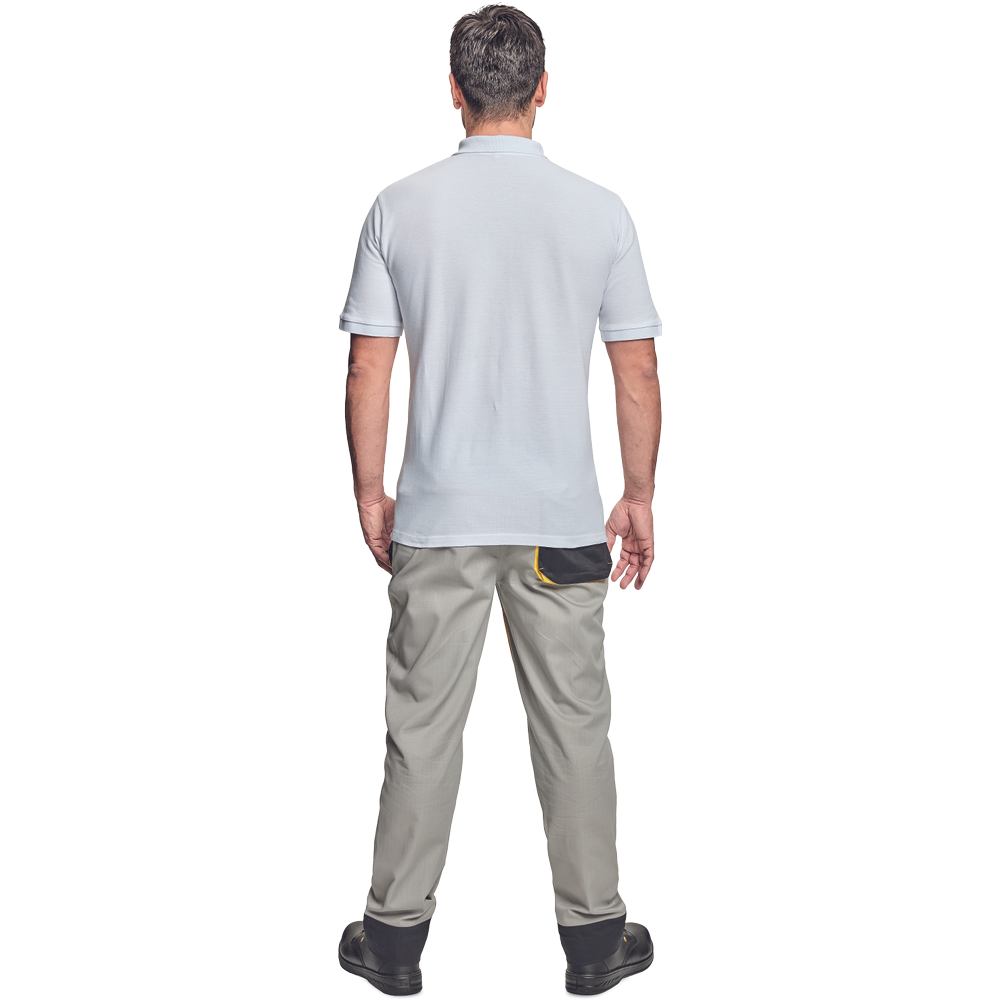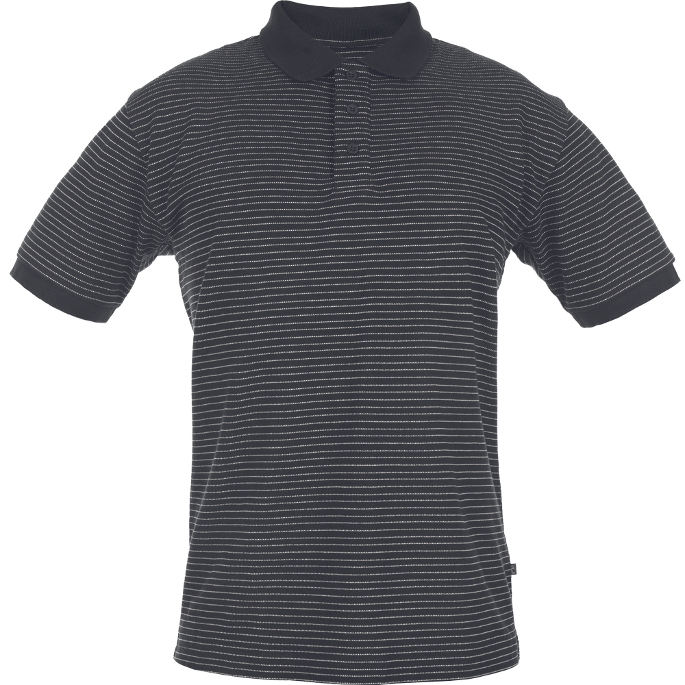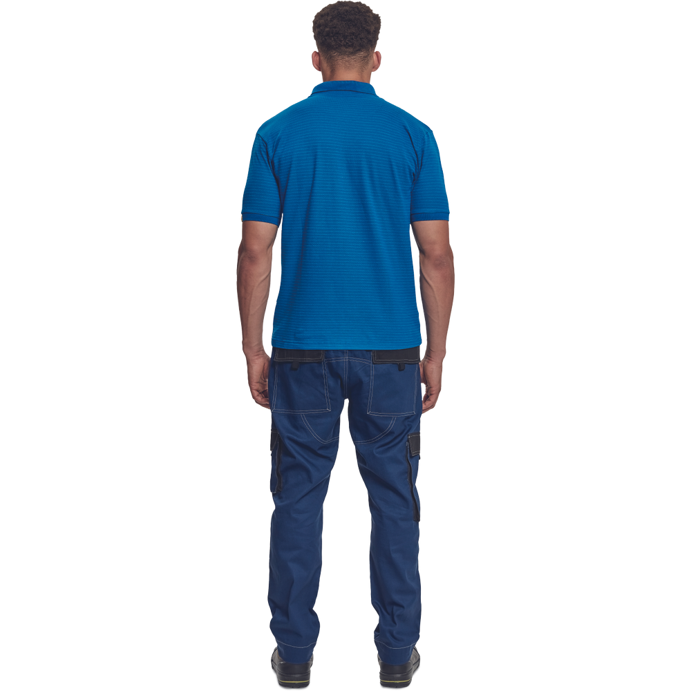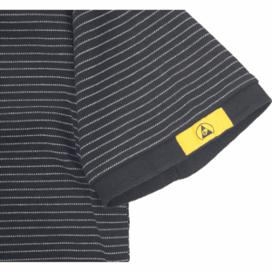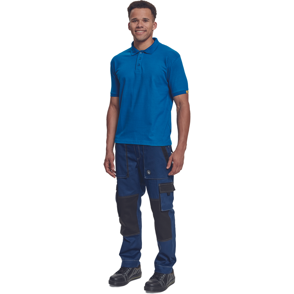 Polo majica ESD s kratkimi rokavi iz bombažnega pika z antistatičnimi vlakni; zagotavlja zaščito elektronskih naprav pred elektrostatičnimi učinki; univerzalni kroj.