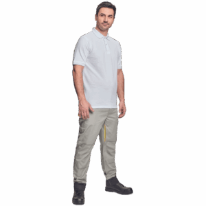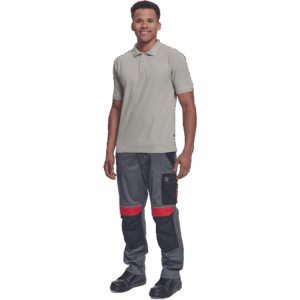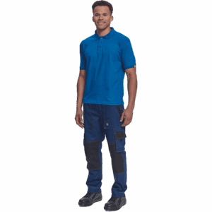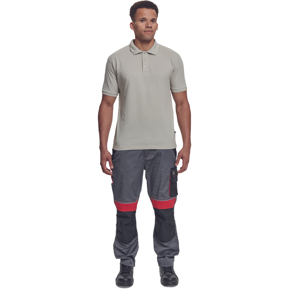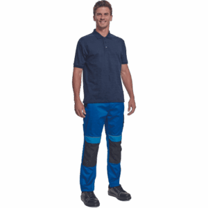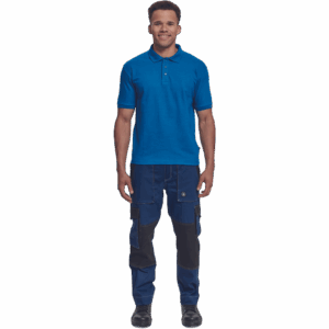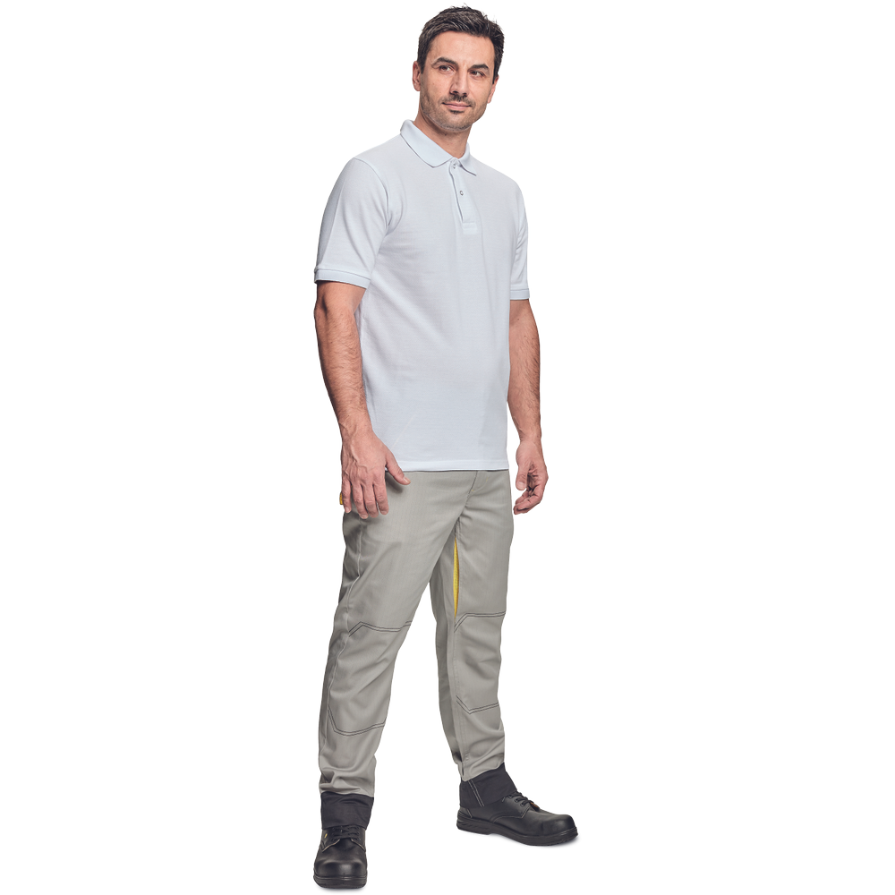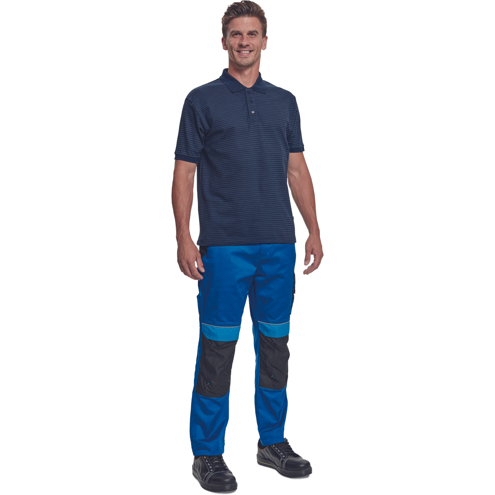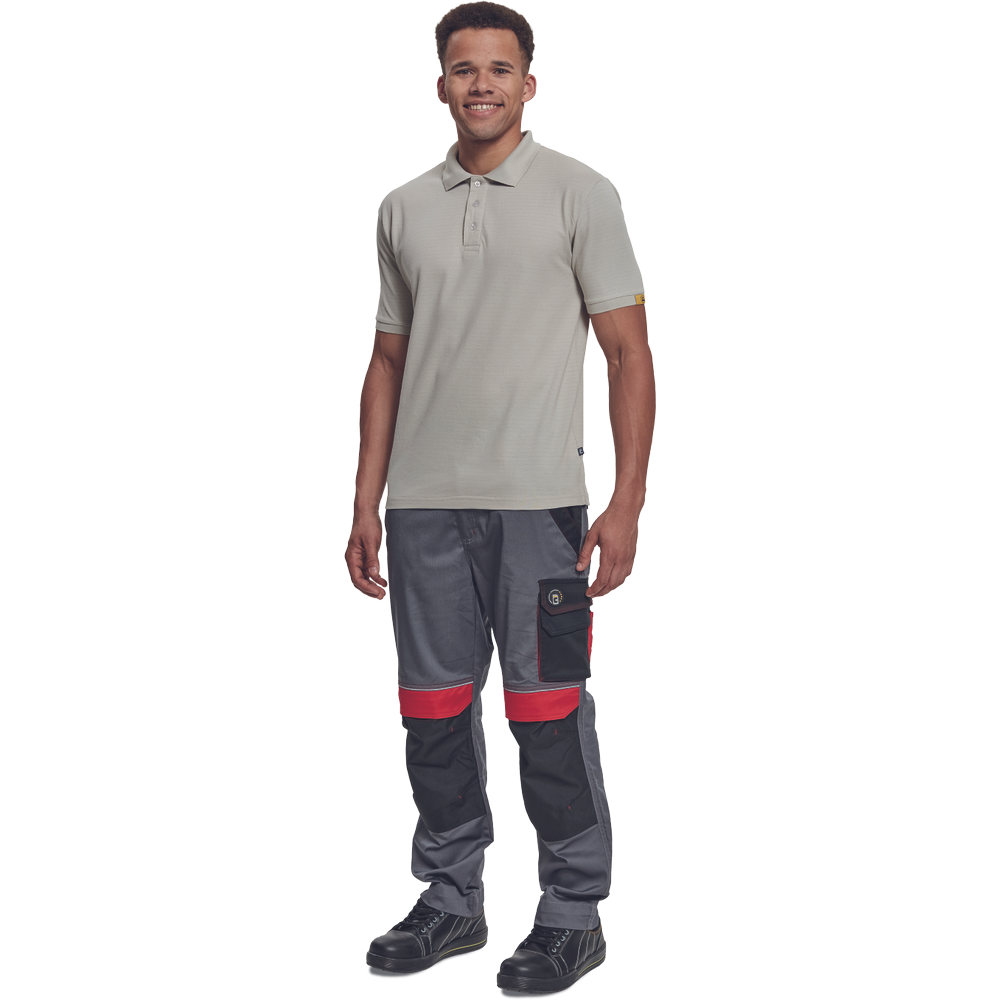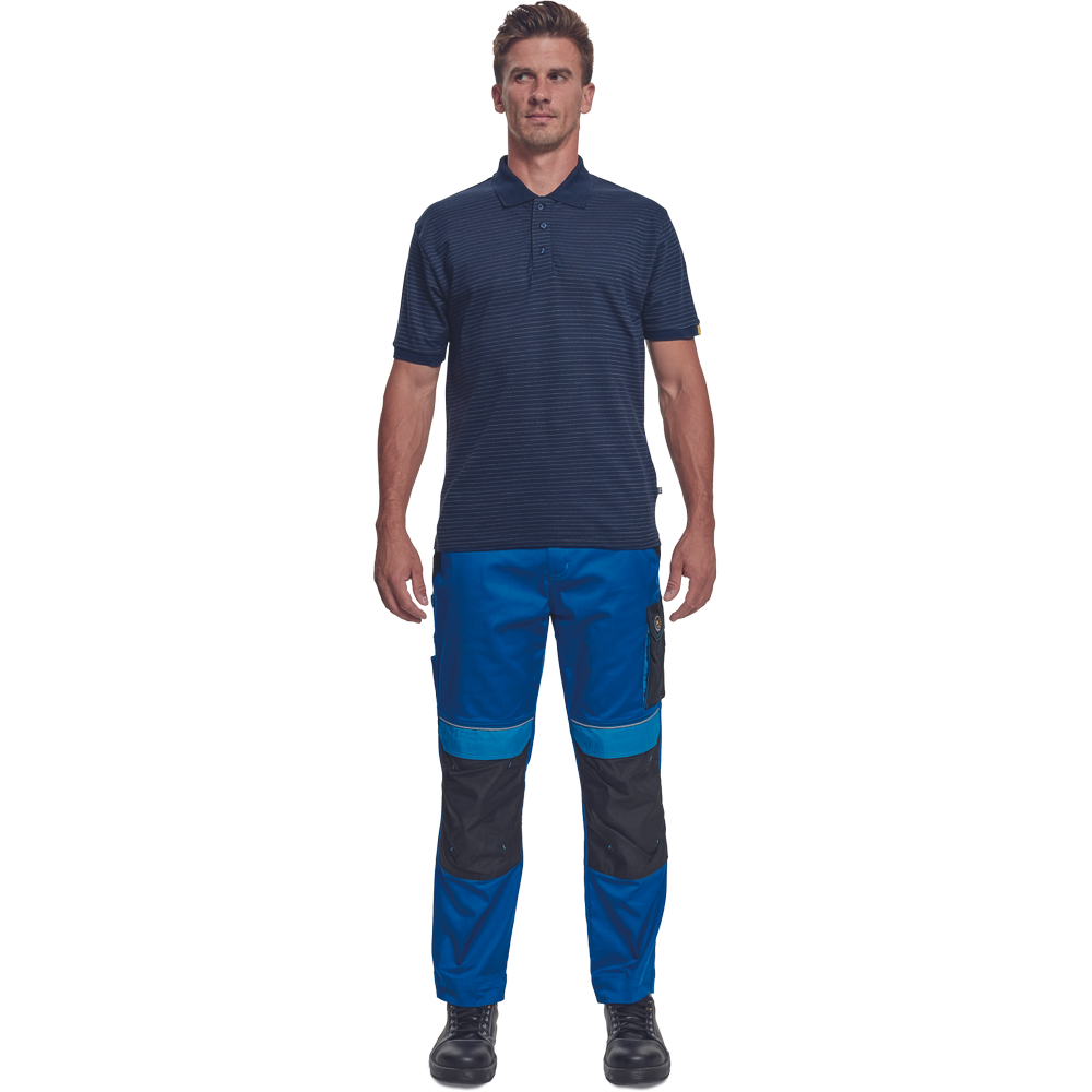 Polo majica ESD s kratkimi rokavi iz bombažnega pika z antistatičnimi vlakni; zagotavlja zaščito elektronskih naprav pred elektrostatičnimi učinki; univerzalni kroj.
