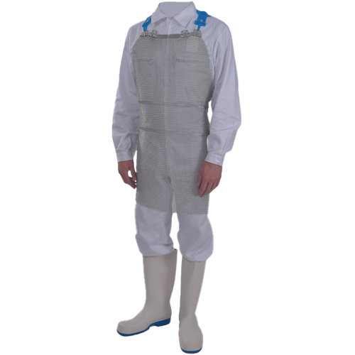 – Zaščitni predpasnik iz 100-odstotnega nerjavečega jekla vam bo zagotovil odlično zaščito telesa, udobje, prožnost in vzdržljivost za varno delo – zgornji del predpasnika je opremljen s štirimi pritrdilnimi točkami – serija LIGHTINOX je priporočljiva pri uporabi ročnega noža ali rezalnih orodij v mesnici, zlasti pri izkoščevanju ali rezanju mesa in rib – ne sme se uporabljati za zaščito pred nevarnostmi, povezanimi z gibajočimi se stroji – mreža iz nerjavečega jekla predpasnika LIGHTINOX je odobrena za stik z živili – predpasnik lahko očistite z ustrezno pralno pištolo, namakanjem, intenzivnim krtačenjem ali v pralnem stroju – v vseh primerih mora imeti voda z dodanim pripravkom temperaturo največ 63 °C – hranite v hladnem in suhem – širina 55 cm x višina 70 cm – primeren za telesno višino 148-165 cm