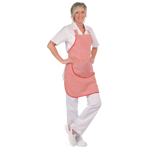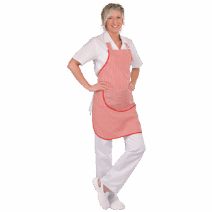 – ženski delovni predpasnik s sprednjim deljenim žepom – nastavljiva višina s trakovi in plastično zaponko