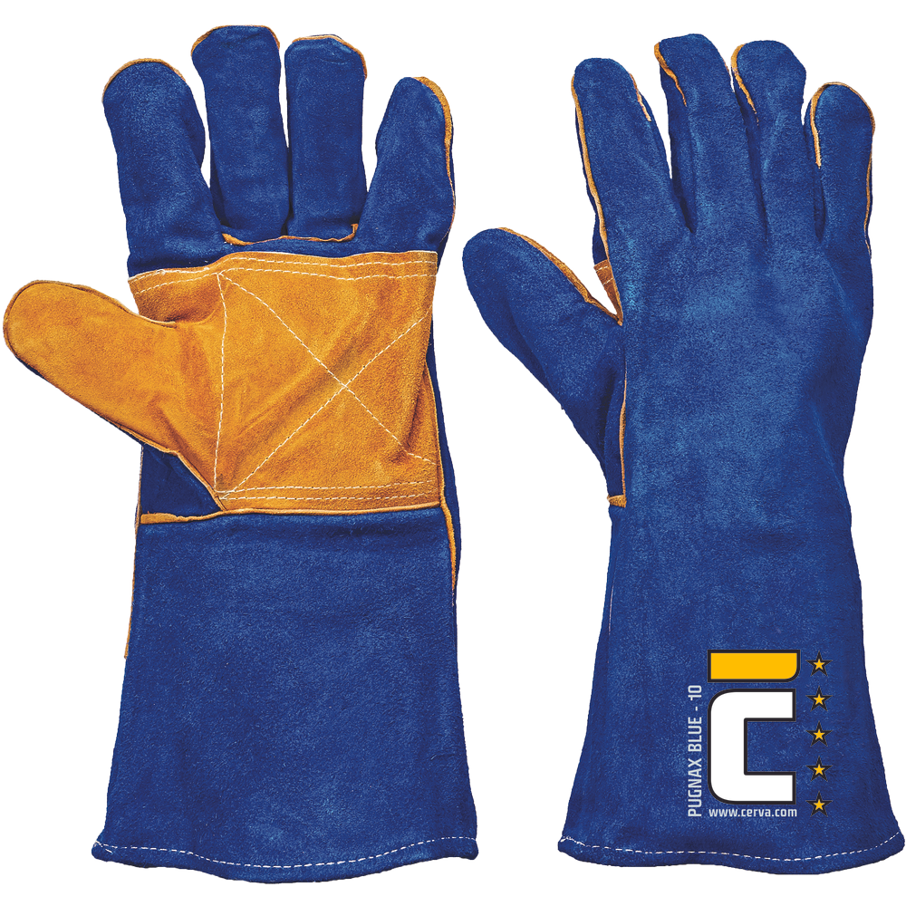– usnjene varilske rokavice iz govejega trna – dolžina 35 cm – ojačitev v delu med dlanjo in palcem – zašite s kevlarskimi nitmi