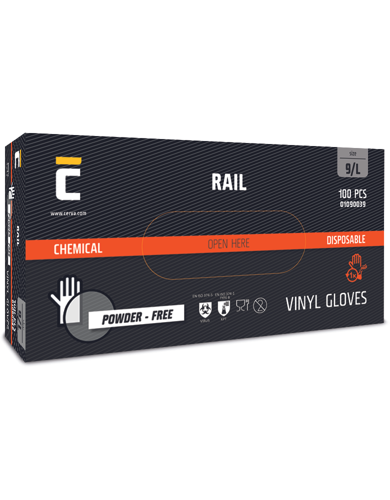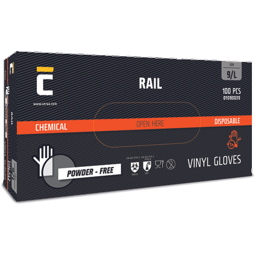 – vinilne rokavice za enkratno uporabo brez prahu – primerne za kratkotrajen stik z nemastnimi živili