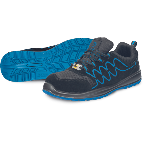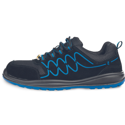 Udobna poklicna obutev razreda O1 v skladu s standardom EN ISO 20347:2023. Antistatični in ESD vložek, podplat z dvojno gostoto PU/PU z absorpcijo energije v peti. Trpežen zgornji deljeno semiš usnje v kombinaciji s tkanino oxford. Odlična izbira za delovna mesta v zaprtih prostorih, kot so avtomobilska industrija, logistika ali industrijska proizvodnja.