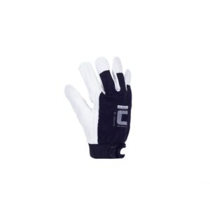– kozje usnje na dlani in prstih, hrbet iz bombažne tkanine – dobra spretnost in dolga življenjska doba – manšeta na velcro