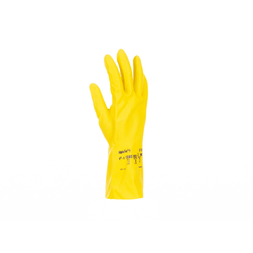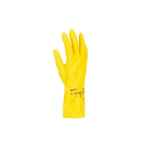 – rumene rokavice iz 0,35 mm debelega naravnega lateksa – z velurjem na notranji strani – skupna dolžina 30,5 cm – primerne za gospodinjska dela