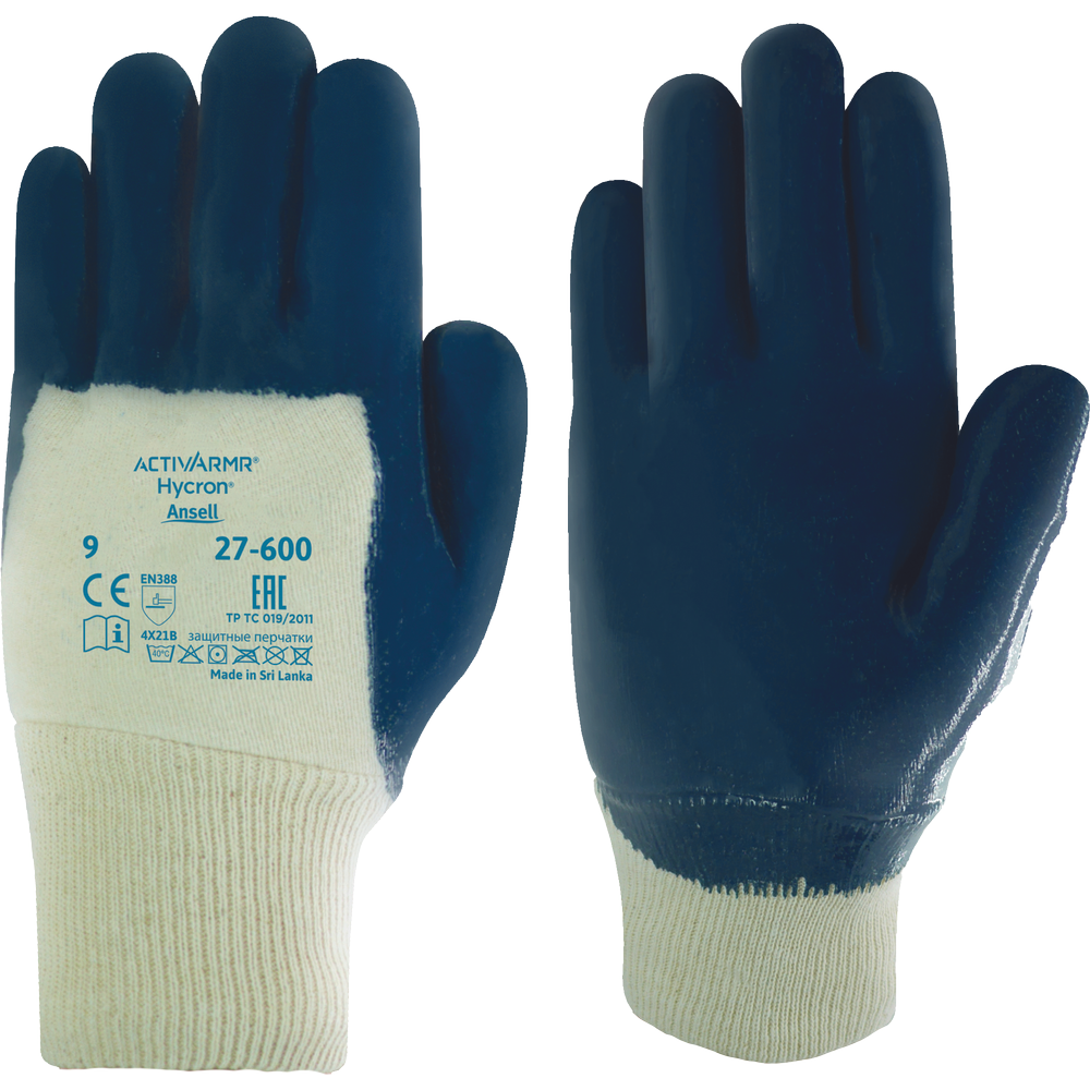 – antistatične šivane rokavice iz bombažnega trikota – namočene v nitril – z elastičnimi manšetami – primerne za ravnanje z abrazivnimi materiali (ulitki, strižno jeklo, opeke itd.)