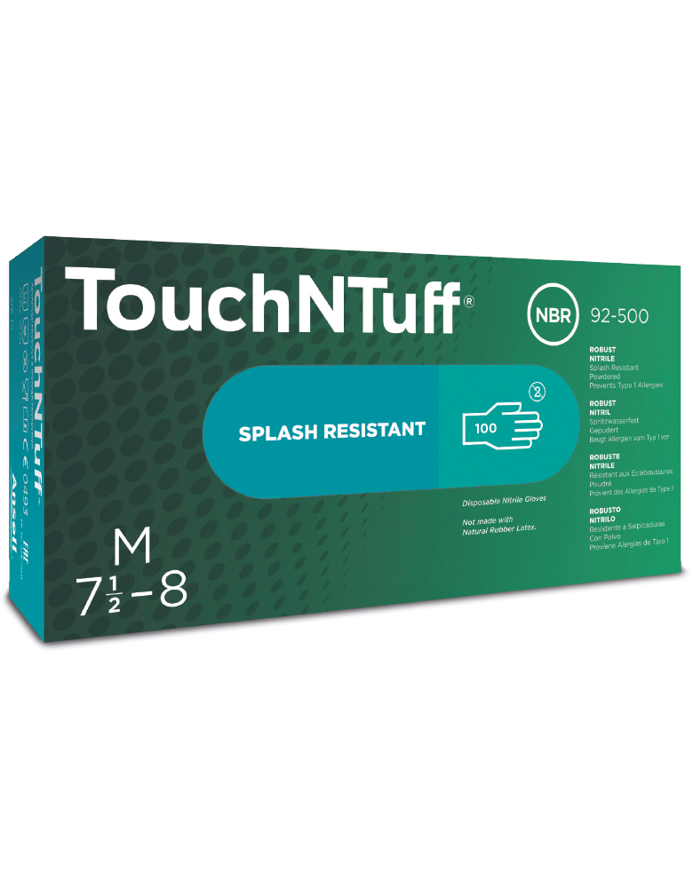 – zelene antistatične rokavice za enkratno uporabo iz 100 % 0,12 mm debelega nitrila brez primesi – z valovitim robom – v prahu (A92-500) ali brez prahu (A92-600 in A92-605) – skupne dolžine 24 cm in 30 cm – 100 kosov v škatli