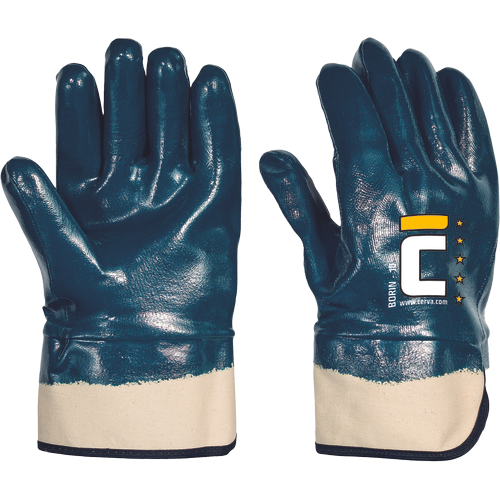 – šivane rokavice iz bombažnega džersija – debelejša nitrilna prevleka (nedrseč oprijem) in široka manšeta z možnostjo pokrivanja oblačil – rokavice so primerne za delo z abrazivnimi materiali v močno mastnem okolju