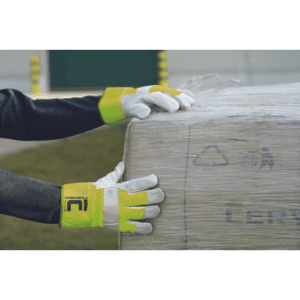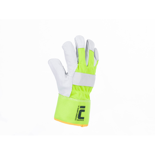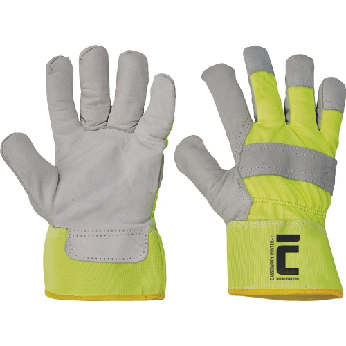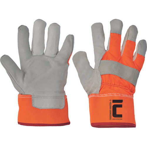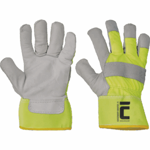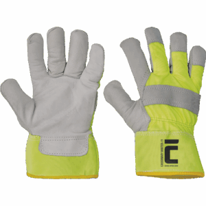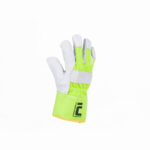 – termoizolirane rokavice z enobarvno dlanjo iz fine goveje kože – odsevna barvna poliestrska tkanina na hrbtni strani – manšeta