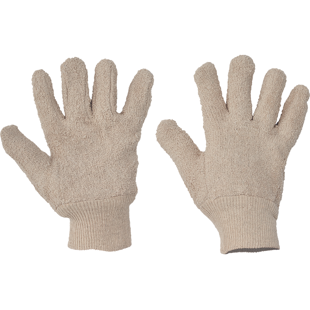– šivane rokavice z elastično pleteno manšeto iz debelega bombažnega frotirja