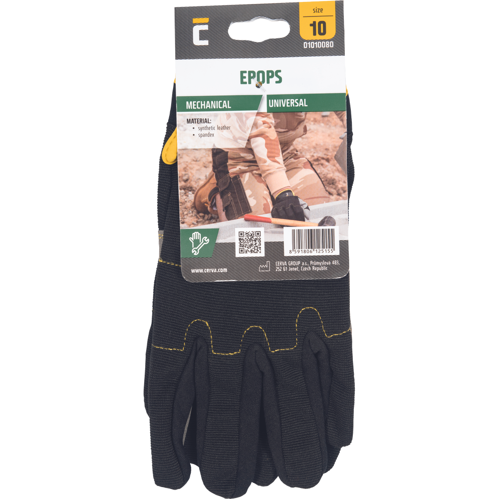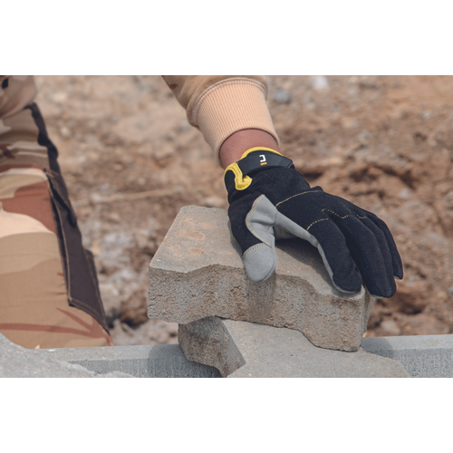 – šivane rokavice, dlan iz umetnega semiša – hrbet iz sintetične pletenine s Spandex® in ščitniki sklepov – manšeta in podloga dlani na velcro