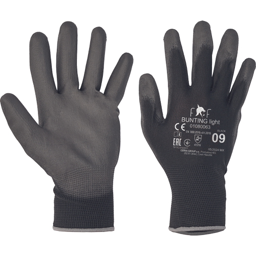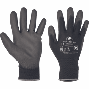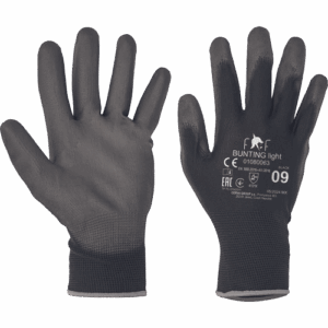 – pletene brezšivne rokavice iz poliestra z dlanjo in konicami prstov, potisnjenimi v PU – elastična manšeta