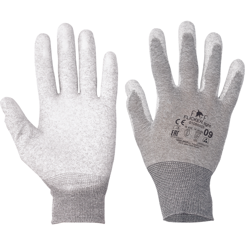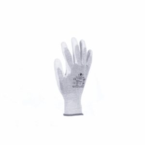 – pletene brezšivne antistatične rokavice iz poliestra z integrirano plastjo ogljikovih vlaken in poliuretana na dlani in prstih ter elastično manšeto