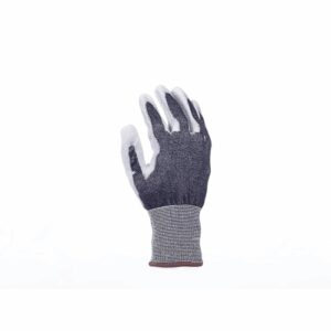 – pletene brezšivne rokavice – stopnja zaščite proti prerezom C – siva PU plast na dlani in prstih – elastična manšeta