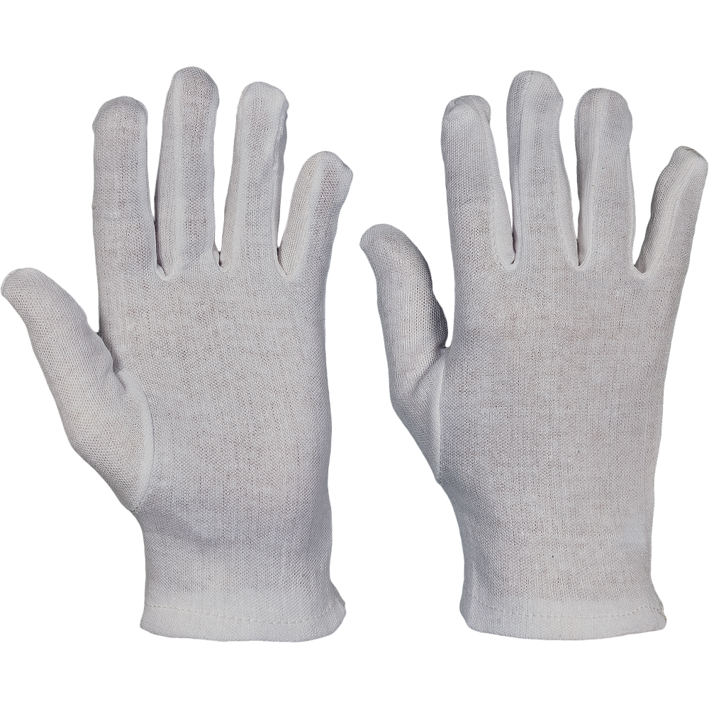– šivane rokavice iz fine beljene 100-odstotne bombažne tkanine, izdelane po metodi fourchette cut