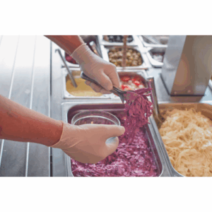 – rokavice za enkratno uporabo iz lateksa v prahu – primerne za kratkotrajen stik z živili