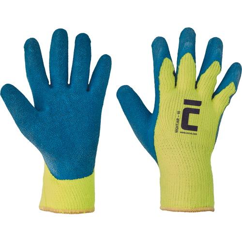 – pletene brezšivne rokavice iz akrila – na pol namočene v naravni lateks – s hrapavo površino dlani