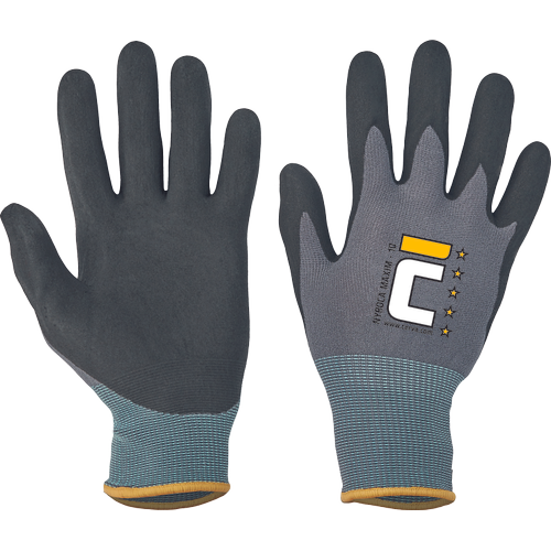 – rokavice iz najlona/lycra jerseyja, prepojene z mikropornim nitrilom – odlična prepustnost – zelo dober oprijem v suhem, mokrem in mastnem okolju
