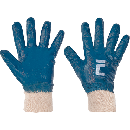 – šivane rokavice iz podloge iz džersija – prepojene z nitrilom – z elastičnim pletenim zapestjem