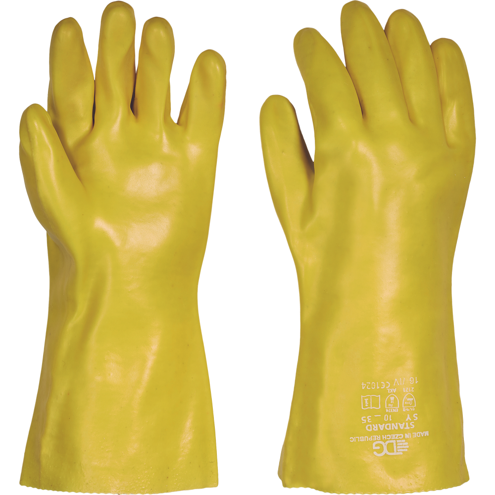 – šivani bombažni interlok, prepojen s PVC in nitrilom – odporen proti mehanskim in kemičnim tveganjem