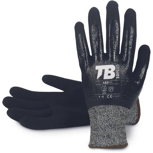 – brezšivne zaščitne rokavice v celoti prevlečene z nitrilno peno na osnovi iz HPPE/steklenih vlaken – peskana nitrilna prevleka na dlani – pletene manšete – trpežne – visoka odpornost proti urezu in obrabi – dobra odpornost na olja, maziva in naftne derivate – varen oprijem v vseh razmerah – 13 GG