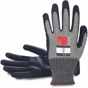 – rokavica s sivo brezšivno podlogo iz tuffalena® in steklenih vlaken – črna penasta nitrilna prevleka na dlani – 13GG