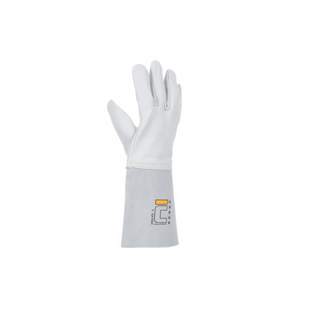 – usnjene varilske rokavice iz kozje kože – zašite s kevlarskimi nitmi – razcepljena usnjena manšeta 15 cm – primerne za varjenje TIG