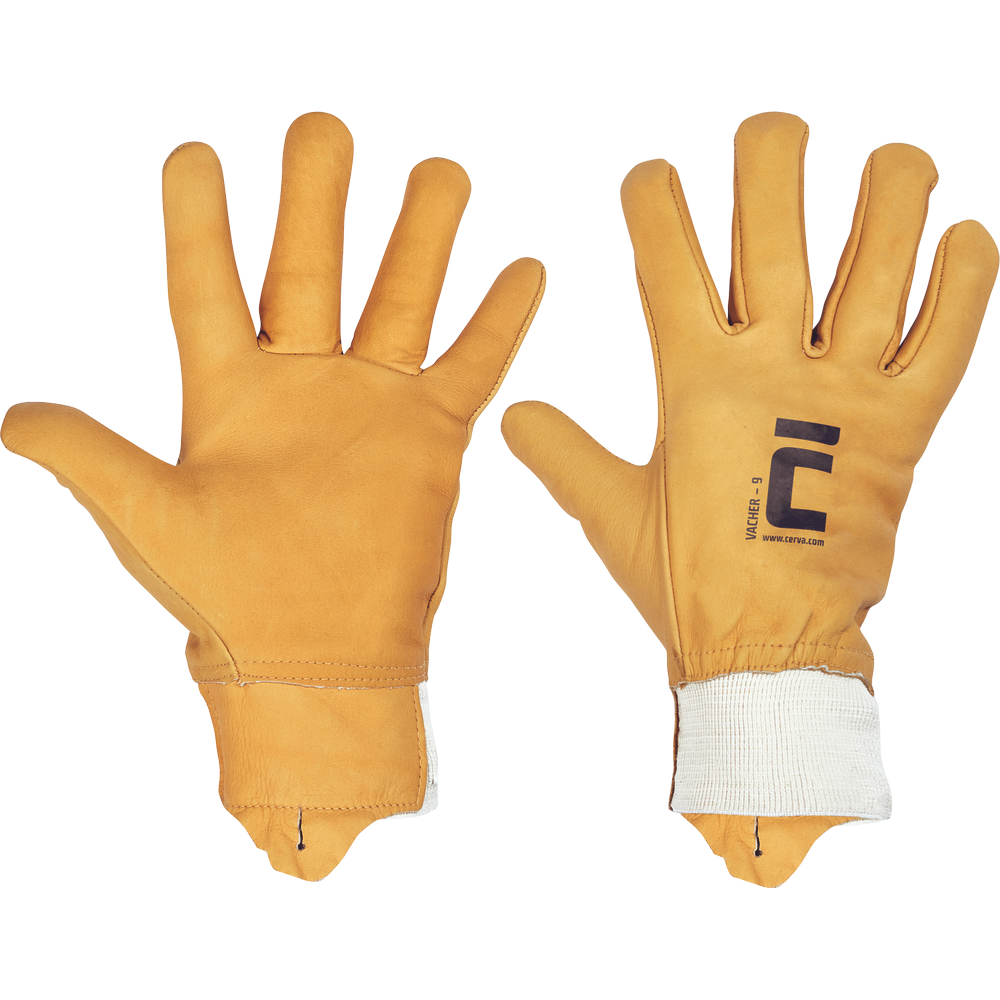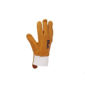 – šivane usnjene rokavice iz goveje kože – nepremočljive – zgornji del manšete – elastično rebro – spodnji del ojačan z usnjem