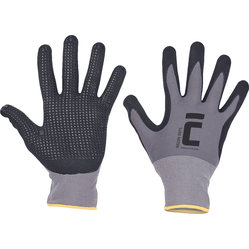 – brezšivne pletene zaščitne rokavice – material najlon/elastan s premazom s pikami na dlani in prstih