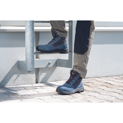 – udobje je bistven dejavnik, ko več ur dnevno delamo stoje – da bi zadovoljili to potrebo, sta zgornji del in oblazinjen ovratnik teh čevljev izdelana iz mehkega semiša in perforirana, kar zagotavlja učinkovito zračnost – varnostna kapica iz kompozitnega materiala skupaj z antistatičnim, protipotresnim in nedrsečim podplatom zagotavlja zaščito pred najpogostejšimi tveganji poškodb – Sanitiziran zelo učinkovit vložek vpija vlago z antibakterijami, antibakterijskimi, antistatičnimi in protimikrobnimi lastnostmi – za notranjo podlogo je bila uporabljena mreža Airnet – posebna tkanina s tehnologijo mikrokanalov, ki notranji podlogi zagotavlja najvišjo funkcionalnost transpiracije – ta model je iz certificiranih komponent najvišje kakovosti v 100 % izdelal italijanski proizvajalec varnostne in delovne obutve z več kot 40 leti izkušenj