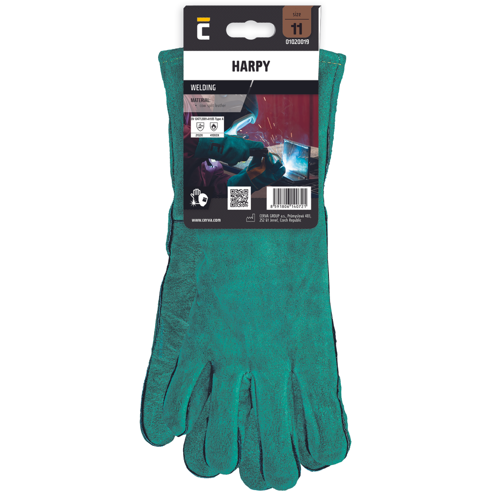 – rokavice iz kravjega cepljenega usnja v dolžini 35 cm – bombažna podloga – ojačitev na dlani – pokriti šivi – certifikat: varjenje tipa A