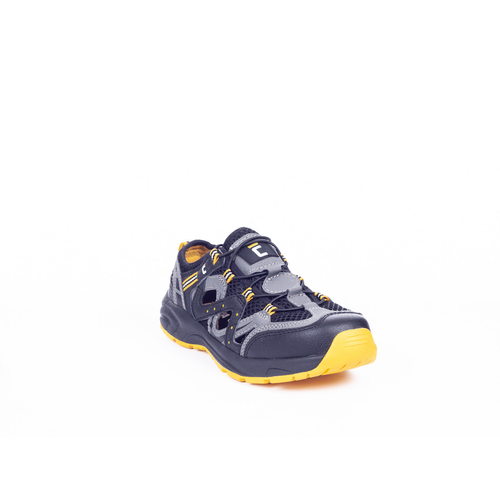 Varnostni sandali s kompozitno kapo na prstih. Podplat – fylon/reber. Zgornji del iz usnja in zračne mrežice. Rumeni dodatki zagotavljajo vidnost uporabnika.