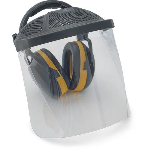 Kombinacija naglavne slušalke Hellberg s prozornim polikarbonatnim ščitnikom za obraz in ščitniki ušes ED 2H Ear Defender; največje udobje in zaščita za uporabnike, ki hkrati ne potrebujejo zaščite glave; zelo dobro prezračevanje; zaščita pred mehanskimi tveganji – zaščita pred udarci s srednjo energijo (B); zaščita pred staljeno kovino; dolžina ščitnika 200 mm, teža 74 g, debelina 1 mm; EN 166 1B 3 9 CE