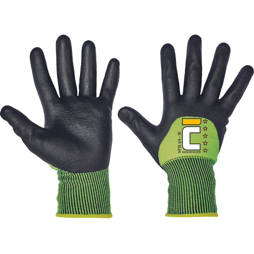 – pletene brezšivne rokavice – fluorescentna barva zagotavlja boljšo vidljivost uporabnika – 3/4 nitrilna prevleka zagotavlja odpornost na olja – rokavice je mogoče kombinirati z rokavcem Glareola proti porezovanju