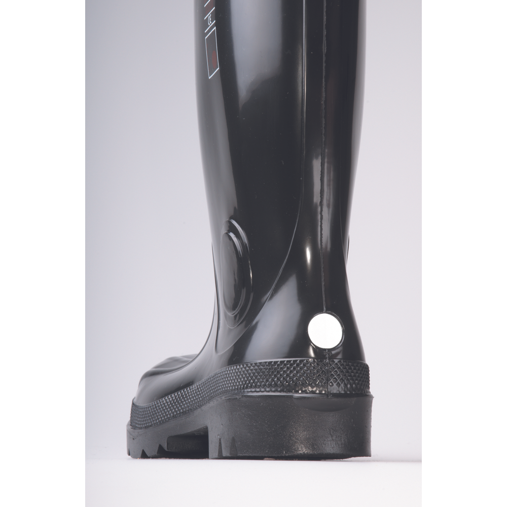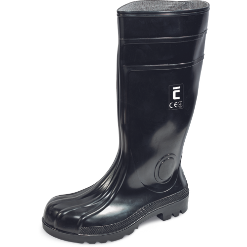 Visoki varnostni antistatični škornji iz PVC in nitrila z jekleno kapico na prstih. Zasnovani so za zaščito pred vodo, umazanijo in perforacijo. Podplat odporen na kisline, olja, goriva in maščobe. Višina približno 38 cm, teža približno 2,5 kg.