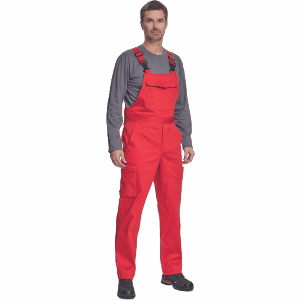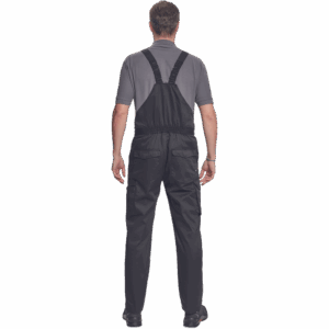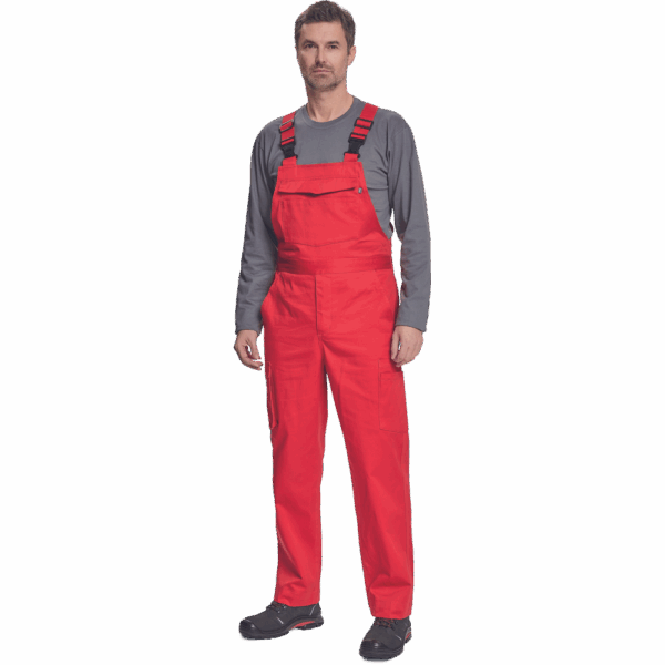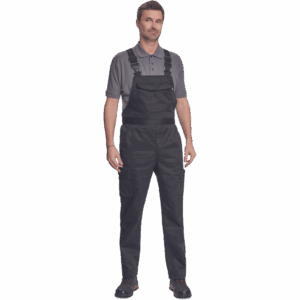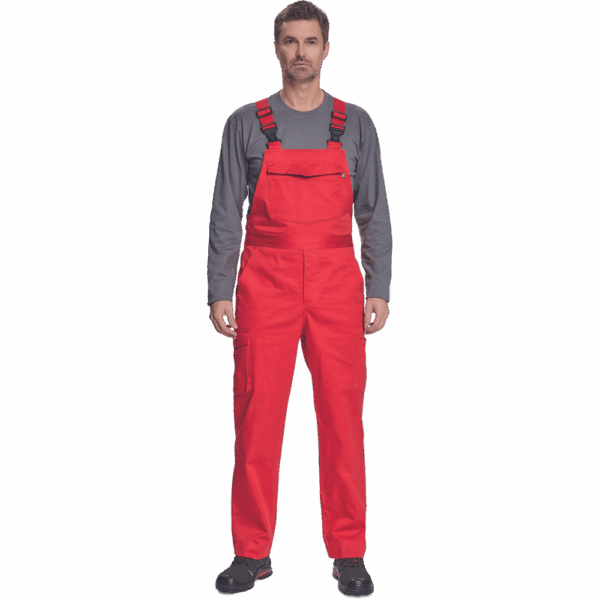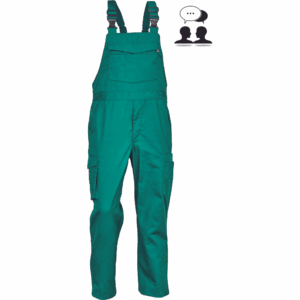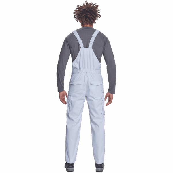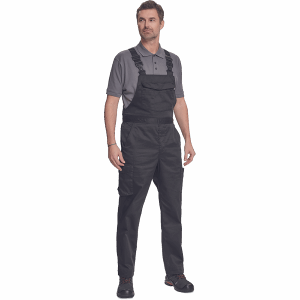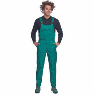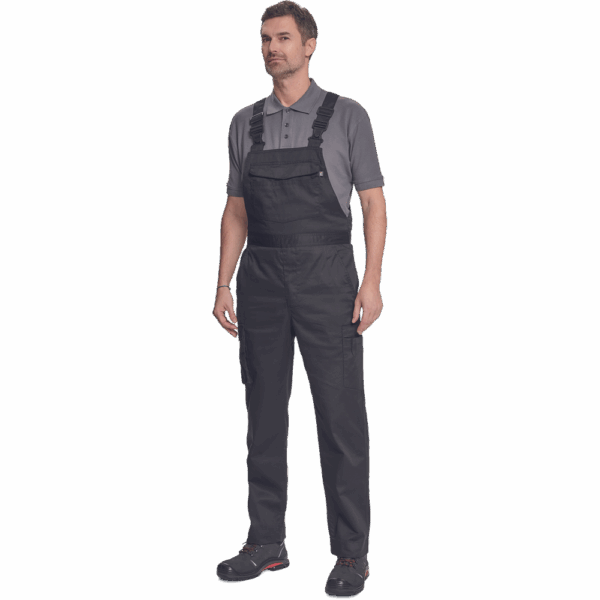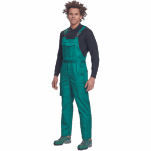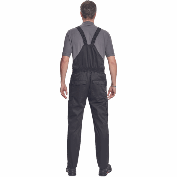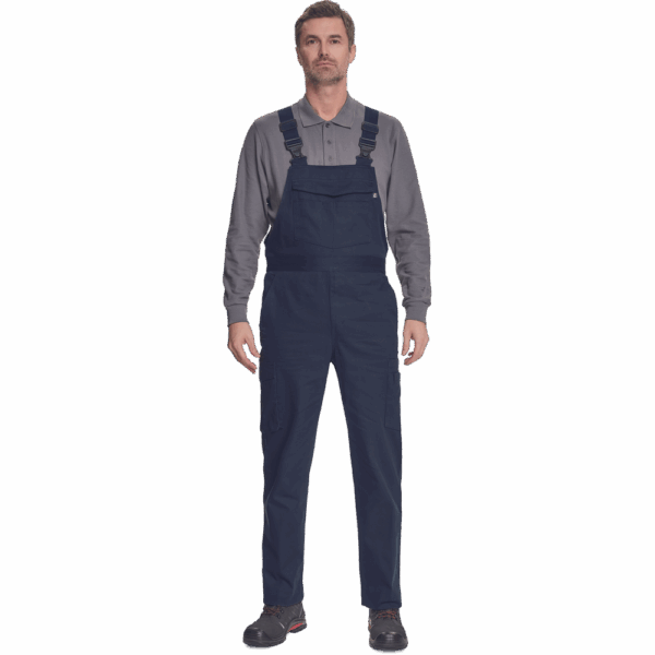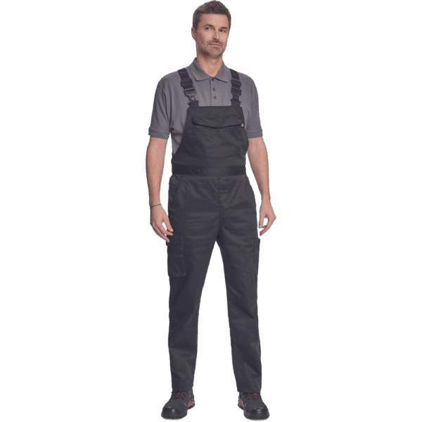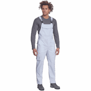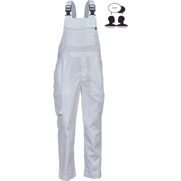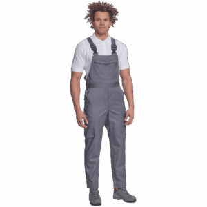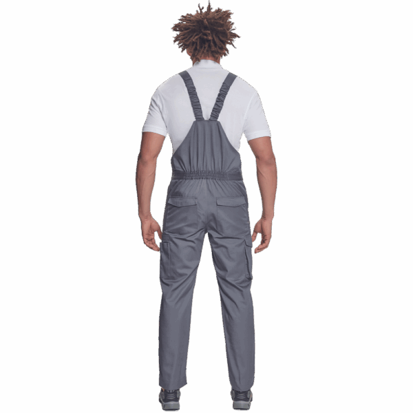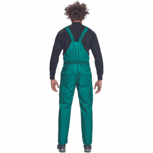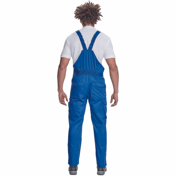 – moške delovne lahke hlače z naprsnikom z elastičnim delom na zadnji strani – 2 stranska žepa, 1 žep za kovance – 2 večnamenska žepa na stegnih, 2 zadnja žepa – 1 velik večnamenski žep za naprsnik – elastični naramnice z zaponko – podaljšljiva dolžina nogavic