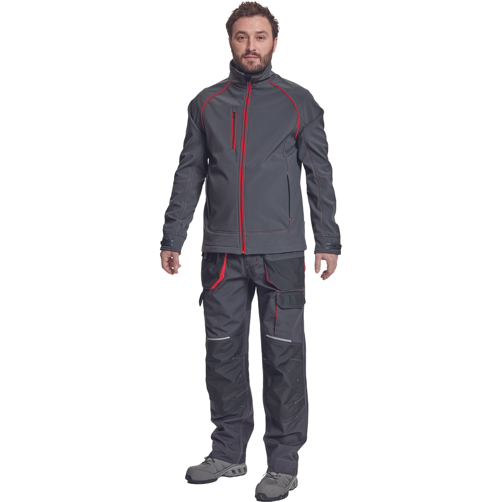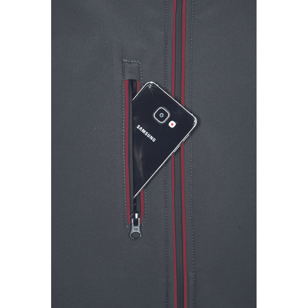 – lahka udobna softshell jakna z membrano TPU – notranja izolacija iz flisa – 2 stranska žepa – 1 prsni žep z zadrgo – velrco nastavitev robov rokavov – kontrastne cevi