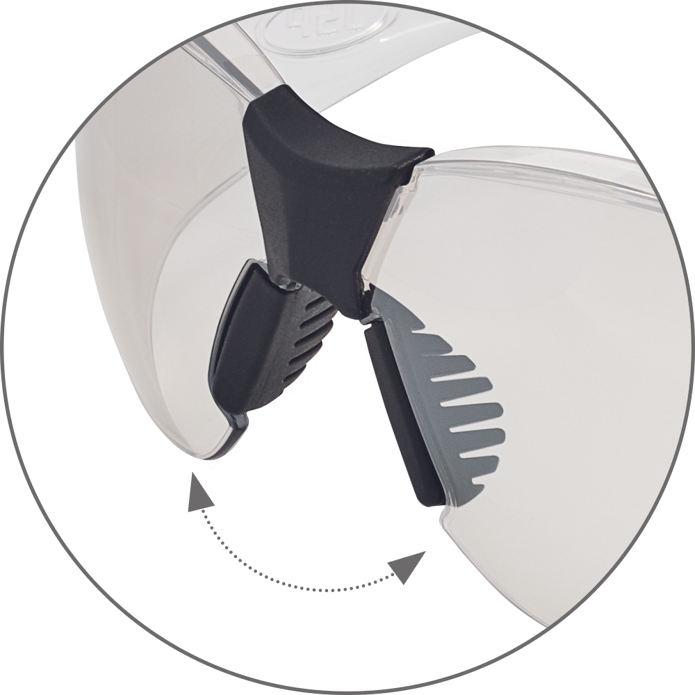 Zelo lahka očala, tehtajo le 26 g – antistatični polikarbonatni vizir, zaščita UVA, UVB, UVC – prilagodljiva nosna blazinica – mehka guma na koncu nosnikov – zaščita proti praskam in megli – I/O Indoor/outdoor – leče so odlične za uporabnike, ki stalno preklapljajo med uporabo v zaprtih prostorih in na prostem – zmanjšajo količino bleščanja.