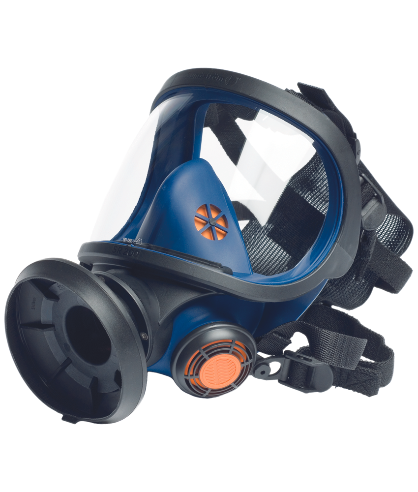 Maska SR 200 je narejena iz silikona in je izdelana v eni velikosti, ki ustreza večini velikosti obraza. Maska je opremljena s tremi vdihovalnimi in dvema izdihovalnima ventiloma, zato je upor pri dihanju zelo majhen. Pokrovi ventilov za izdih s pregradami učinkovito ščitijo ventile in membrane pred prahom in barvno meglico. Zasnova in lokacija vdihovalnih ventilov izboljšujeta obseg, ki je na voljo za komunikacijo. Material in pigmenti telesa maske so odobreni s strani FDA in BGA za izpostavljenost določbam, kar zmanjšuje tveganje kontaktnih alergij. Elastični naglavni pas maske, ki ga je mogoče enostavno nastaviti, je pritrjen na okvir vizirja in na ventile za izdih, kar skupaj z veliko kronsko ploščico prispeva k udobnemu in varnemu prileganju. Sferični vizir maske je izdelan iz polikarbonata, odpornega na praske, ki zagotavlja veliko vidno polje. Maska se lahko uporablja kot filtrirna naprava v kombinaciji s filtri iz serije filtrov Sundström ali kot dihalni aparat s stalnim pretokom zraka skupaj z nastavkom za stisnjen zrak SR 307. Maska SR 200, dopolnjena z dihalno cevjo SR 550 (PU) ali SR 551 (guma), se lahko uporablja tudi kot naglavna maska skupaj s Sundströmovo ventilatorsko enoto SR 500 ali SR 700. Priloženo je držalo za predfilter. Celoplavutne maske SR 200 so skupaj z ventilatorjem SR 500 EX odobrene za uporabo v potencialno eksplozivnem okolju. Najbolje jih je shraniti v škatli SR 344 ali v kovčku SR 339-1 ali SR 339-2.